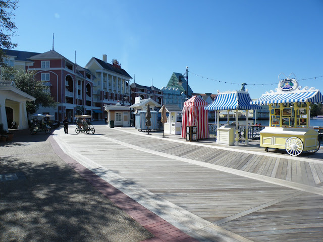 In the evenings my family likes to head over to the Board Walk where street performers entertain crowds. Another fun thing to do at the BW is rent a surrey bike. This is one of my kids' all time favorite things to do in WDW...believe it or not haha....they LOVE pedaling these things around the lake. The littlest one used to sit in the basket and ring the warning bell & yell "WATCH OUT CRAZY DRIVER COMING THROUGH" to pedestrians on the walkway....while the rest of us struggled to pedal the bike up the hills. The worst hill is past the Yacht Club - many many times we had seen people have to get out and push their bike up this one....we always laughed until it happened to US. If you don't get enough speed rounding the bend toward that hill - forget it- you have to get out and push. We have a lot of fun memories of those surrey bikes......with kids a lot of their best times are the simple laid back things. Swimming, the biking, taking pontoon boats out and cruising around, playing in the sand on the beach, or even just the walk between a resort and park...lots of chat and laughs happen during those walks. It doesn't always have to be about a park.